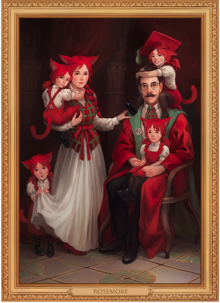 Born into an esteemed Sharlayan house to a Hyur father and Miqo’te mother, Rylanne was the youngest of triplets. Her parents always struggled to keep all three sisters happy, leading to spread of personalities between the three sisters. Ryla's youth was particularly formative for not only her view of the world but her personality, both of which were molded by growing up as part of an identical trio. She often found that she never got her way, and often resorted to pouting and getting angry when it did not happen. This personality carries forward today where it is rather easy to set off her attitude, sending her pouting and crossing her arms until she gets what she wants. Her hair is usually styled into two ponytails in the back of her head.Ryla's family rose to esteem in Sharlayan thanks to her father's involvement of a humble Sharlayan College whose magics focus on capturing and preserving history. He was a founding member of the college and helped develop the ritual and magic that the college is known for. A unique application of magic that absorbs a location's ambient aether to coalesce the memories that have been imprinted on them, allowing one to capture and view the exact events that happened at any given location. The LaPyce Historical Archive (LHA) was founded and funded to explore the applications of such a magic. To this day Ryla's father maintains an active role in developing the magic and pushing it to its limits. From time to time he even teaches classes himself.When Ryla followed in her father's footsteps, she dedicated herself to studying. In her time in college she became an experienced mage in her own right. She dedicated a lot of her learning to enchantments of objects, weaving and casting and layering magic upon an object until it can almost behave as if it was alive. She carries a bundle of charms that are actually just full-sized objects that she has shrunk down.